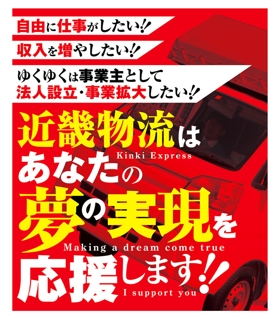 近畿物流は軽貨物運送の独立開業ドライバーを随時募集しています。